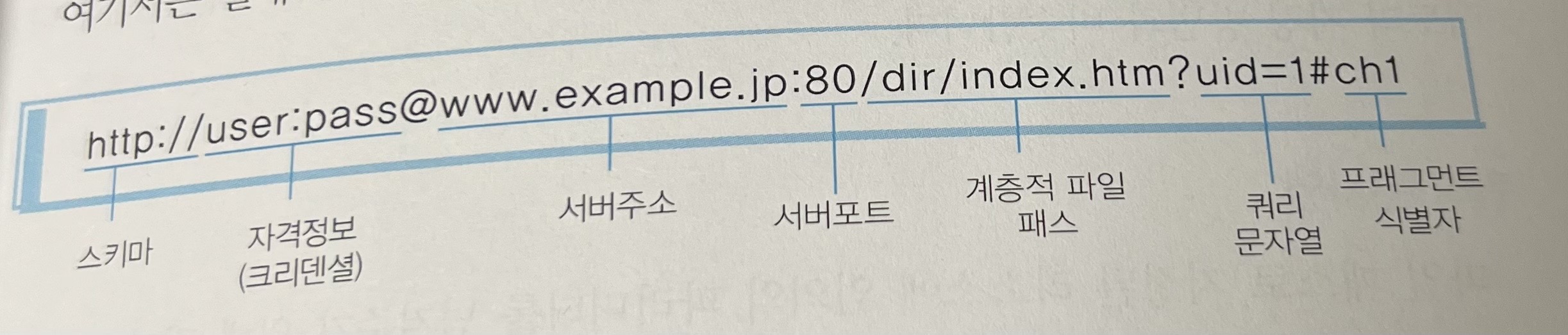 - 프래그멘트 식별자: 주로 취득한 리소스에서 서브 리소스(도큐먼트 중간에 위치)를 가리키기 위해서 프래그멘트 식별자가 사용된다. 이것은 옵션